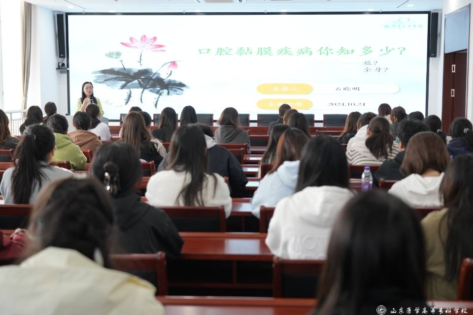 10月24日,山东医学高等专科学校举办蒙山医学大讲堂——口腔医学专题讲座,特邀临沂市人民医院口腔内科主任石晓明作学术报告。