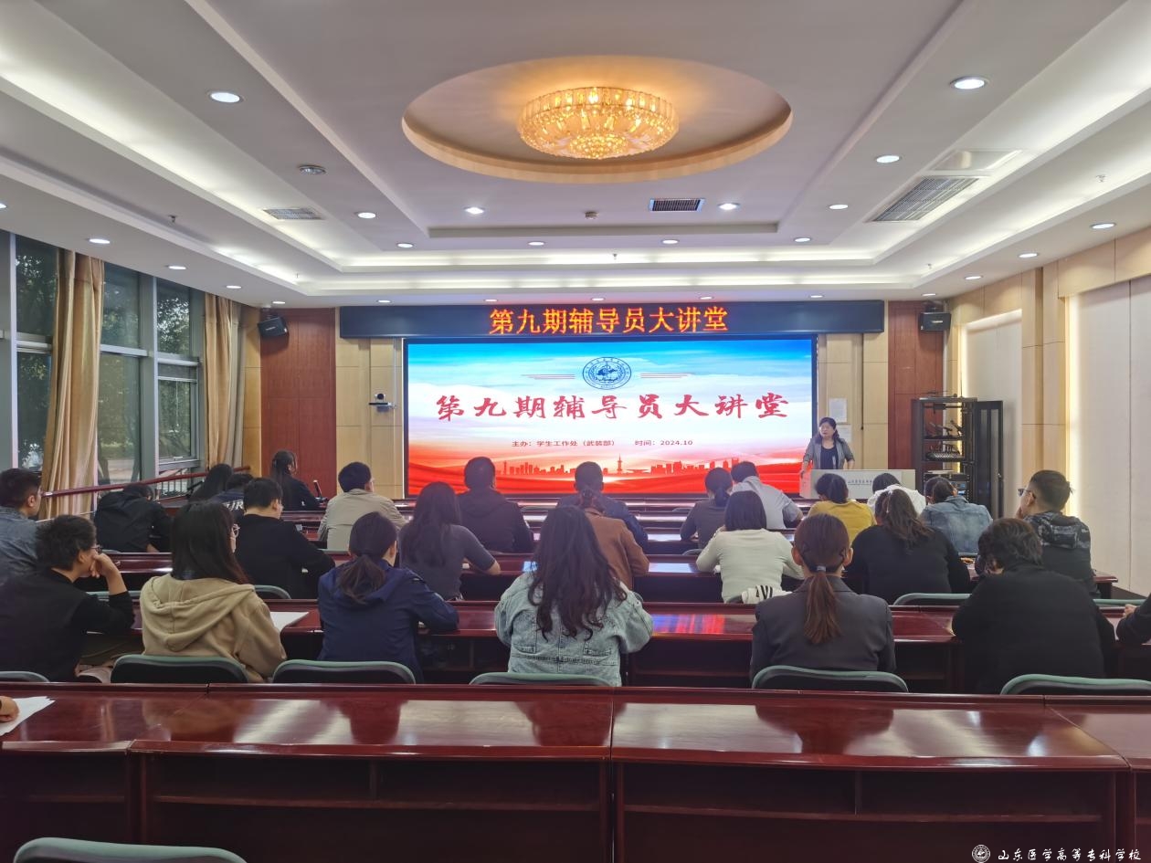 10月17日,山东医学高等专科学校第九期辅导员大讲堂开讲。学生工作处负责同志、各系部党总支副书记及全体专兼职辅导员参加活动。