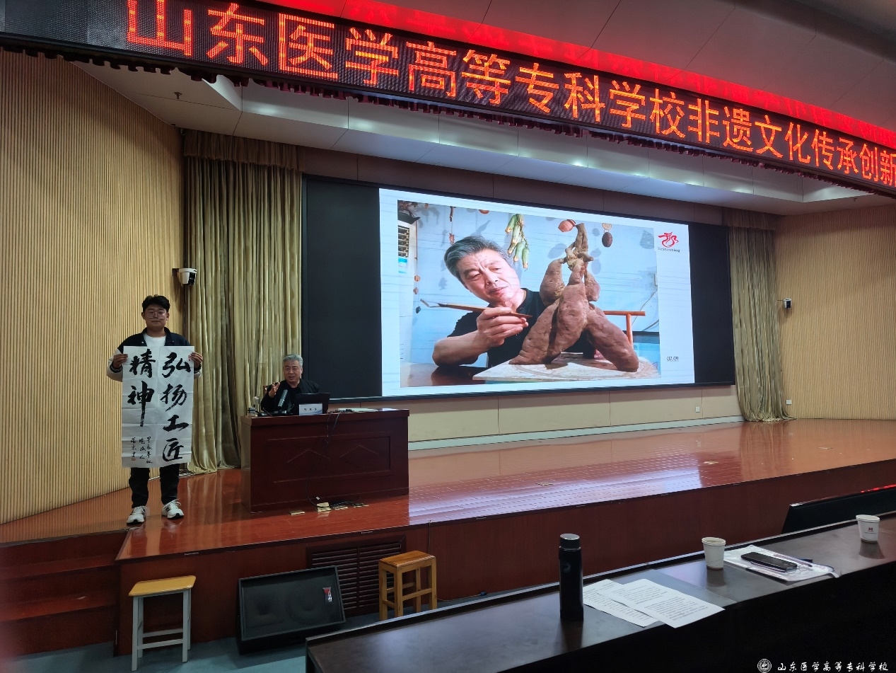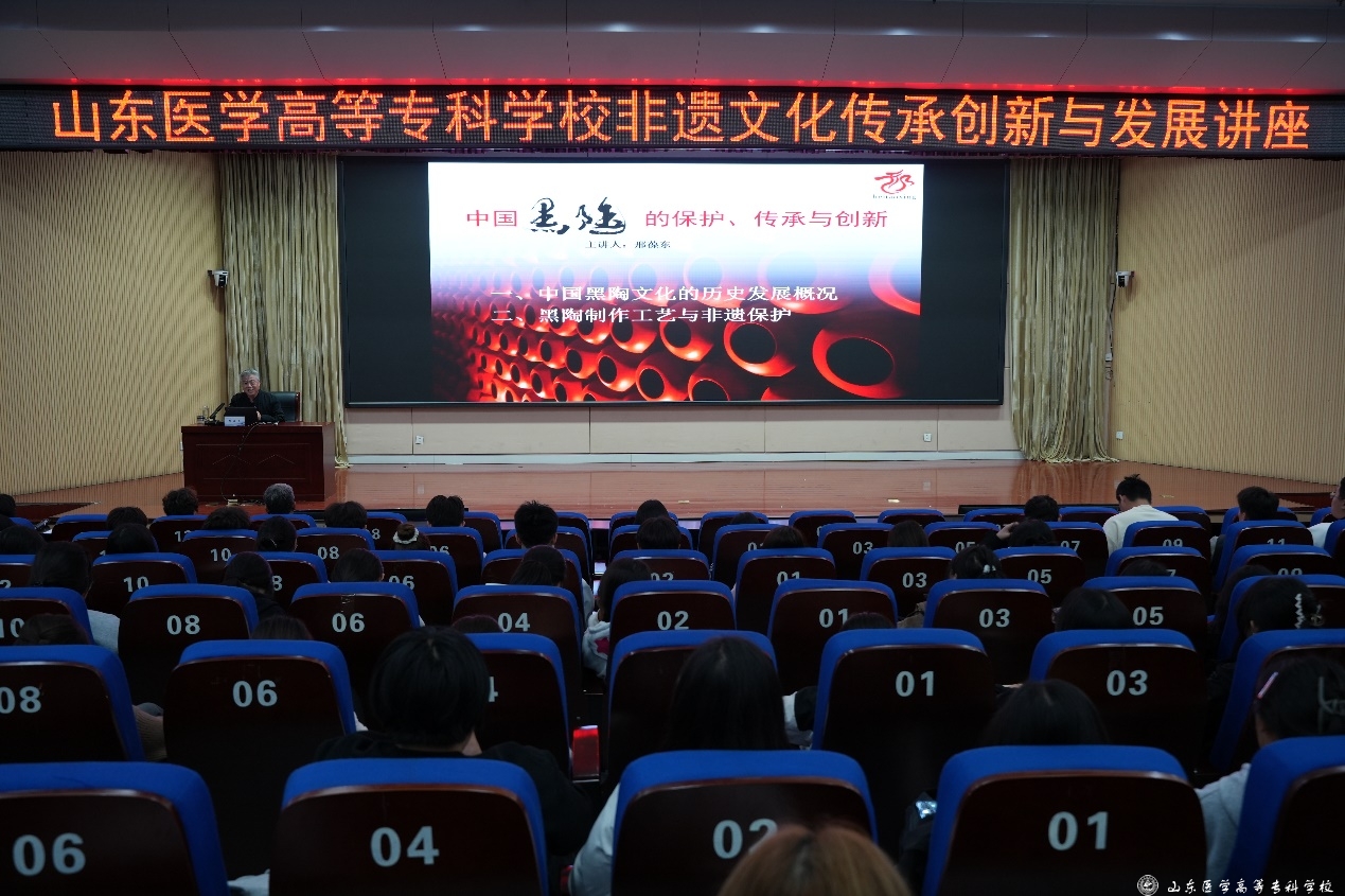 10月23日,山东医学高等专科学校举办非遗文化传承创新与发展专题讲座。特邀中国黑陶文化博物馆馆长、首届“山东手造大工匠”“齐鲁工匠”“山东省非物质文化遗产项目·陶器烧制技艺(日照黑陶)代表性传承人”邢葆东先生来校作报告。