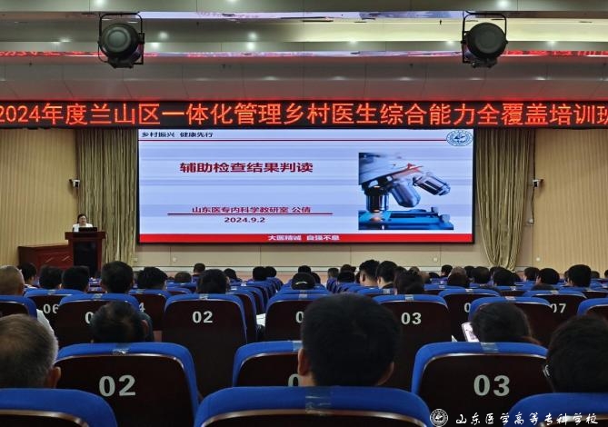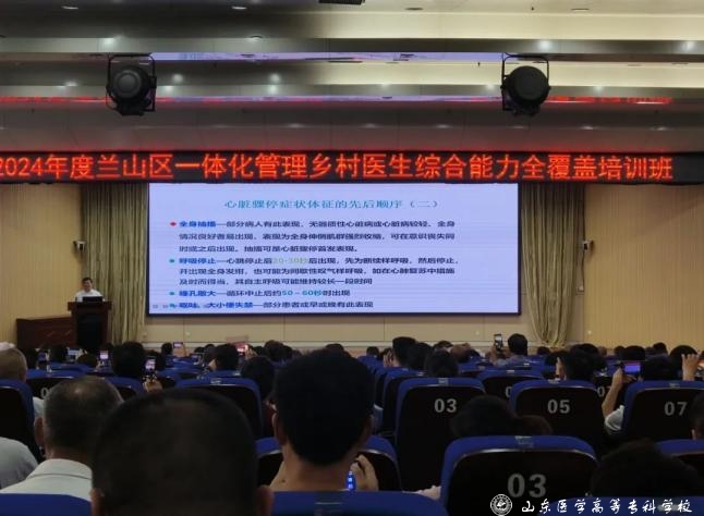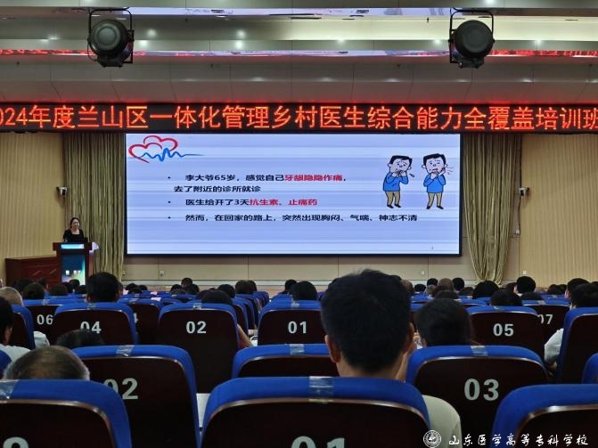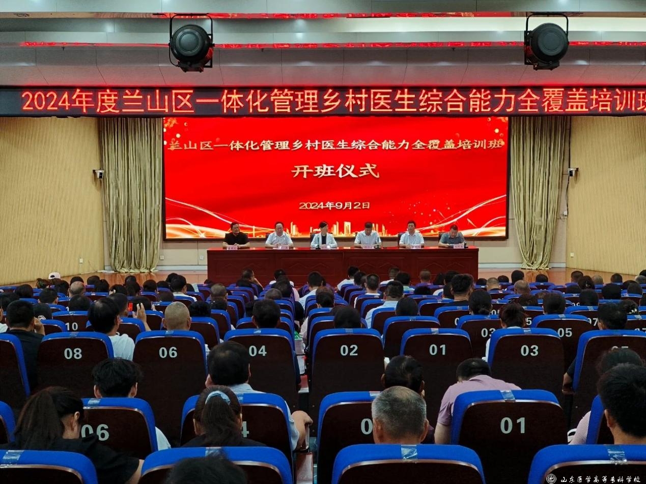 为进一步推动全省乡村医生综合能力全覆盖培训三年行动重点任务落实落地,提升乡村医生服务能力,9月2日-7日,山东医学高等专科学校举办2024年度兰山区一体化管理乡村医生综合能力全覆盖培训班。学校党委委员、副校长孙运粉,兰山区卫健局党组副书记、副局长孙学强,仁宏健康产业集团董事长明磊及学校相关处室系部负责人参加活动,开班仪式由兰山区卫健局医药卫生体制改革办公室主任王利岩主持。