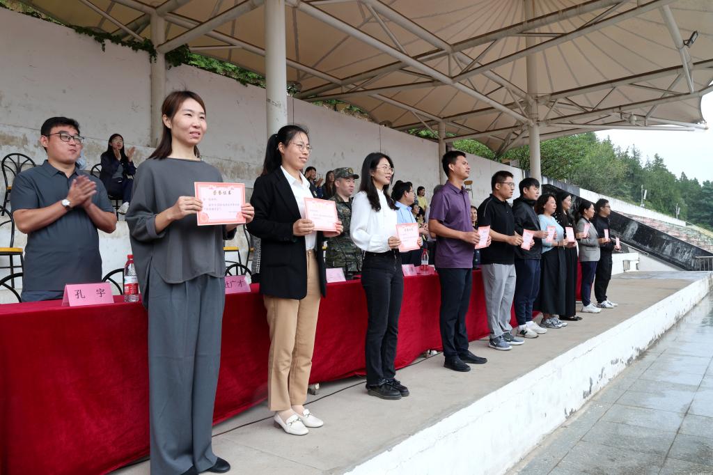会操后,与会领导为军训中表现突出的系部、先进连队、优秀教官和辅导员颁发了九游下载2024的荣誉证书。程智军代表学校向武警济南支队赠送了锦旗。