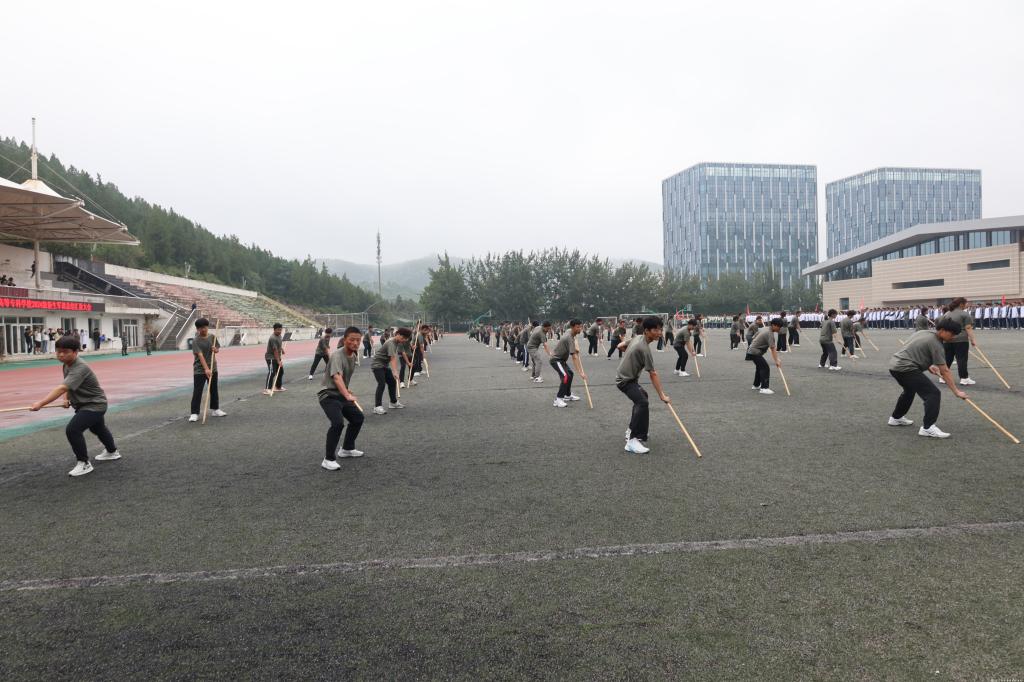 国旗护卫队整齐的步伐、响亮的口号、饱满的精神、昂扬的斗志,展现出山东医专学子积极向上的精神风貌。擒敌拳方队拳风呼啸,动作迅猛有力;女子格斗表演,动作迅猛如风,闪避、进攻、反击一气呵成;应急棍方队棍影翻飞,劈扫挑砸,动作流畅有力,尽显新时代大学生的青春本色。