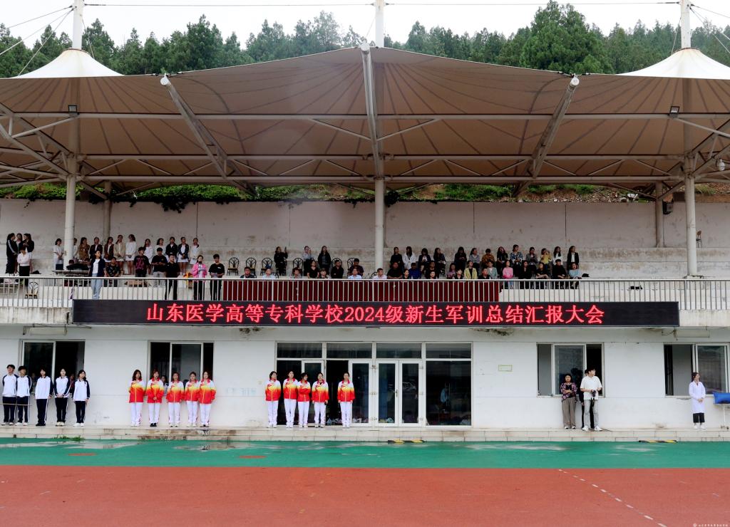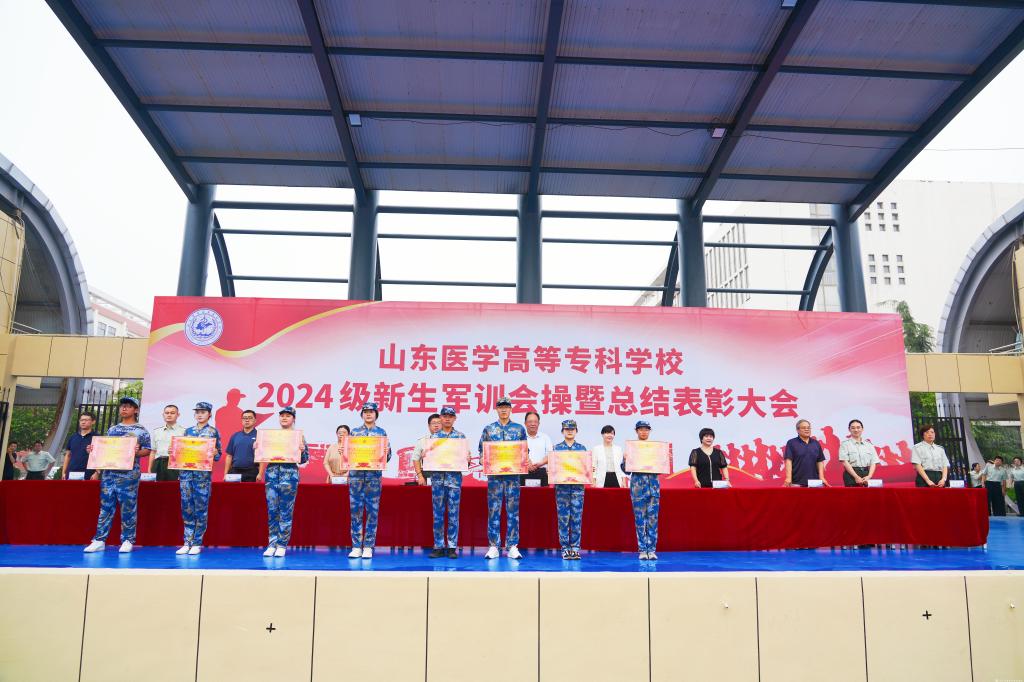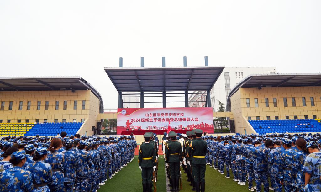 9月14日,为充分展示新生军训成果,激发爱党爱国爱军热情,山东医学高等专科学校在两校区同步举行2024级新生军训会操暨总结表彰大会。学校党委副书记高曰超,党委委员、副校长程智军、孙运粉,学校督学王尚云,武警济南支队作训科参谋郑泽夏,学生工作处(武装部)、各系部有关负责同志及全体军训教官、辅导员、2024级新生参加活动。