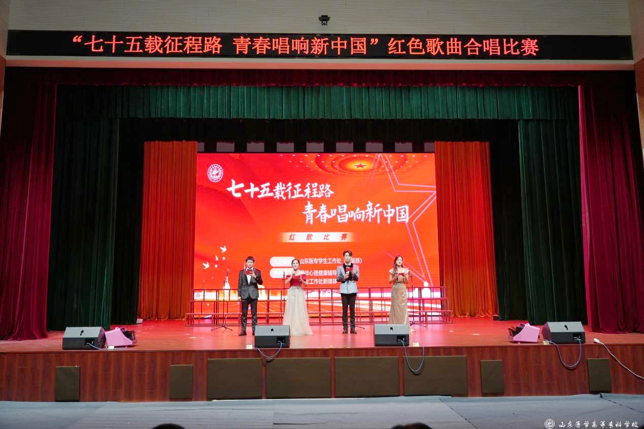 为庆祝新中国成立75周年,弘扬爱国主义精神,9月24日晚,山东医学高等专科学校在体育馆举办“七十五载征程路 青春唱响新中国”红歌比赛。学校党委副书记高曰超,各系部党总支书记、处室负责人,1200余名师生参加活动。