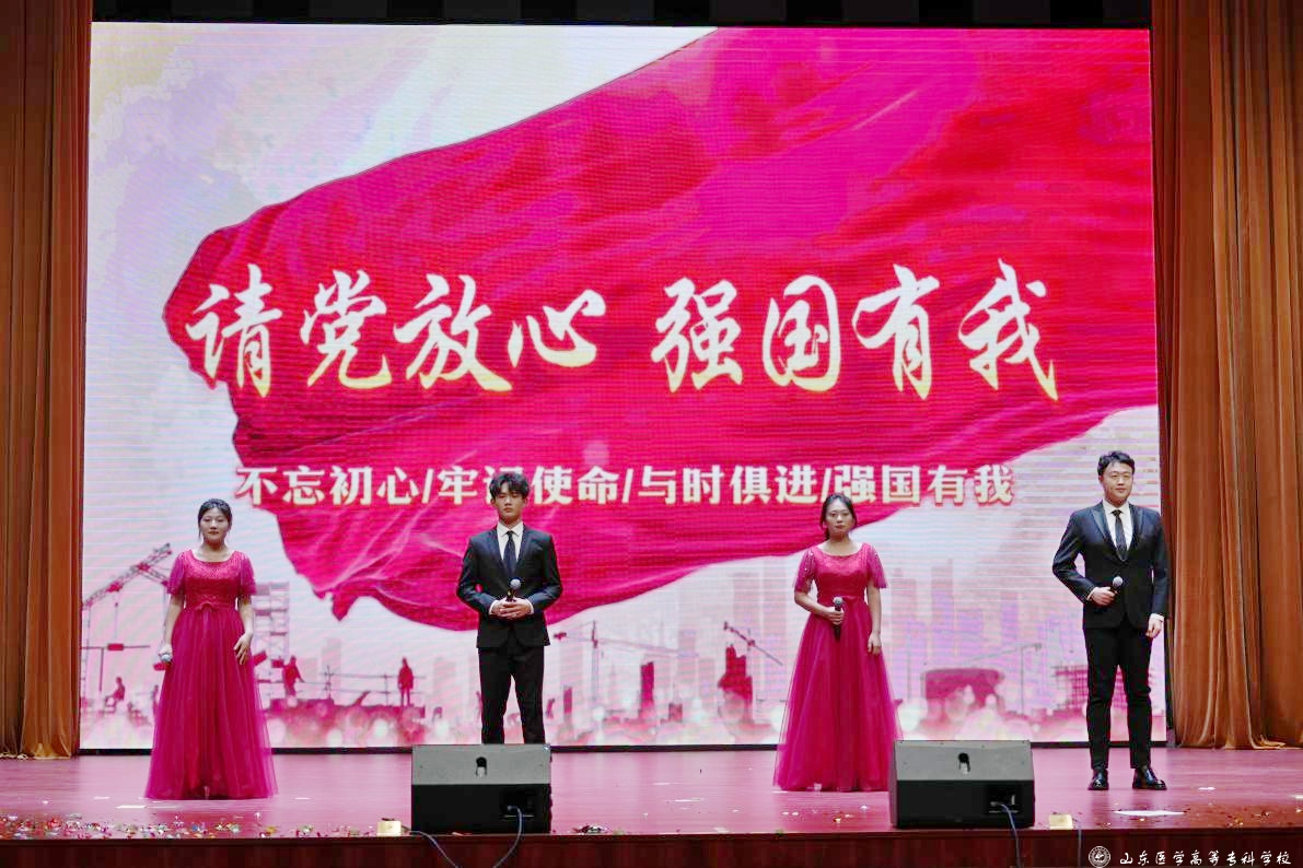 同学们跟随朗诵《请党放心 强国有我》感受了中国共产党百年来的风雨征程,铿锵誓言回荡在晚会上空,传递出青年为实现中华民族伟大复兴中国梦贡献力量的决心和信心。