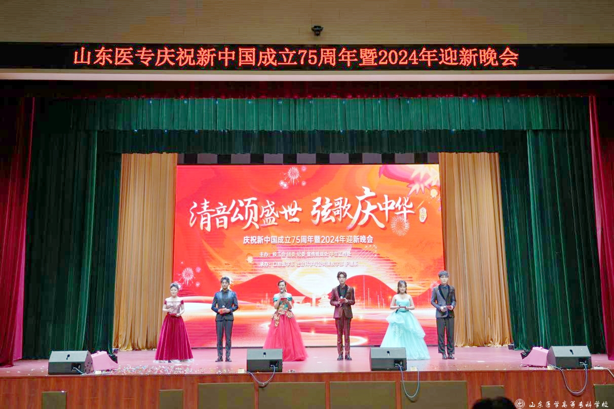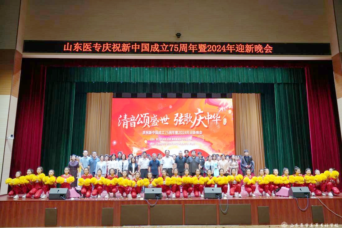 9月27日晚,山东医学高等专科学校在体育馆举办“清音颂盛世,弦歌庆中华”——庆祝新中国成立75周年暨2024年迎新晚会。学校党委副书记、工会主席高曰超,各部门负责同志、师生代表欢聚一堂,共同观看演出。