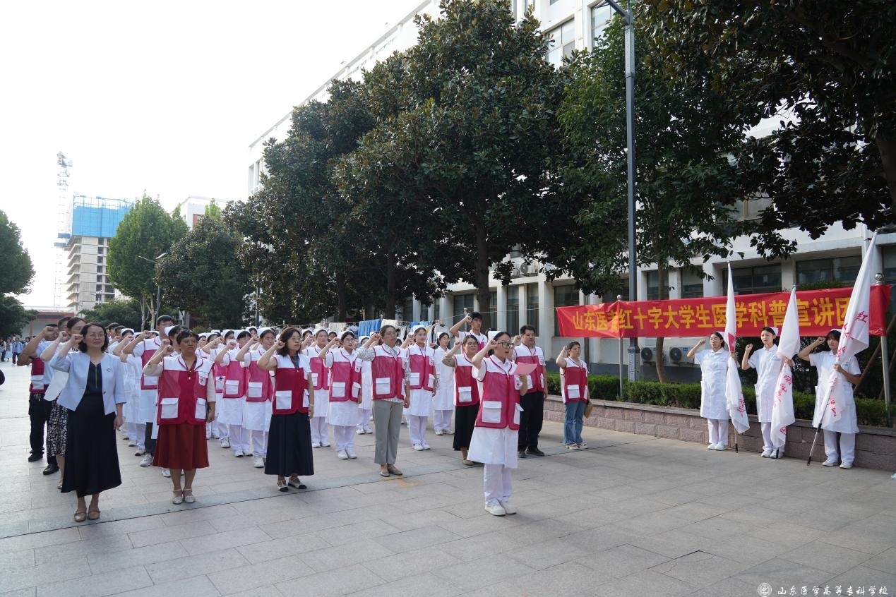 9月27日,山东医学高等专科学校举行红十字志愿服务队、红十字应急救护培训讲师团、红十字大学生医学科普宣讲团授旗仪式暨科普宣讲活动。临沂市红十字会三级调研员于长水,学校党委副书记、红十字会会长高曰超出席仪式,市红十字会、校红十字会理事会相关部门负责同志、培训讲师和团队代表等参加活动。