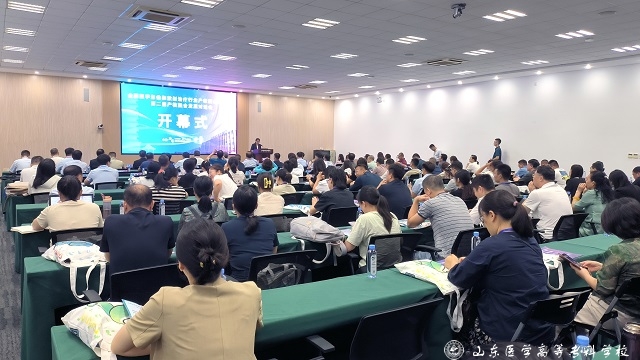 全国卫生健康职业教育教学指导委员会教学质量评价专门委员会主任委员杨文秀,共同体理事长、山东第一医科大学副校长王鹏程,中华医学会肿瘤放射治疗学分会候任主任委员李宝生,中华医学会影像技术分会候任主任委员、山东省医学会放射技术分会主任委员马新武,中华医学会影像技术分会第六届委员会主任委员、全国仿真创新应用大赛医学赛道专委会主任委员石明国,天津医科大学医学技术学院党委书记张雪君,全国卫生健康职业教育教学指导委员会副秘书长王瑾,齐鲁医药学院校长韩冰,共同体理事长、全国卫生健康职业教育教学指导委员会医学影像及放射治疗技术分委会主任委员、山东医学高等专科学校党委书记舒德峰,全国卫生健康职业教育教学指导委员会医学影像及放射治疗技术分委会副主委单位、山东省临沂卫生学校党委书记张晓华,共同体理事长、山东新华医疗器械股份有限公司党委书记、董事长王玉全等领导出席会议并讲话,会议由共同体秘书长、山东医学高等专科学校副校长伊芃芃主持。