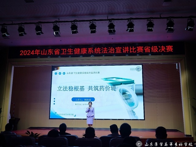 10月15日,山东省卫生健康法治宣讲比赛决赛在济南举行,我校药学系教师杨怡君现场展示的作品《立法稳根基 共筑药价堤》荣获二等奖。