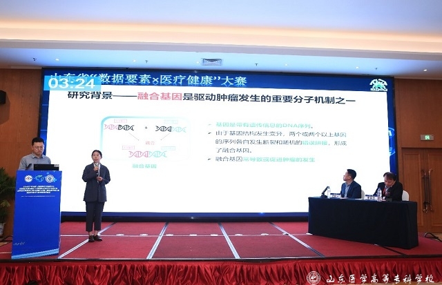 在2024年山东省“数据要素×医疗健康”大赛中,我校医学检验系与济南金域医学检验中心有限公司组成的5人团队参赛作品《融合基因数据分析系统研发助力肿瘤精准诊疗》荣获大赛一等奖,并作为优秀案例进行作品展示。