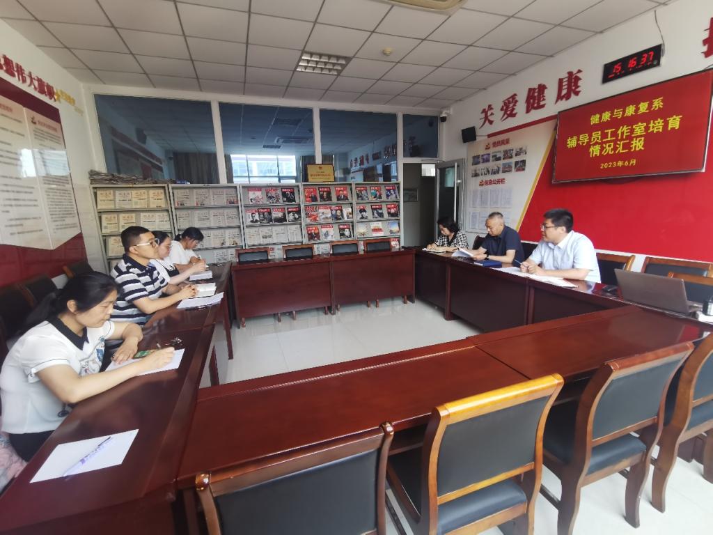 6月14日,学生工作处处长丰新胜、副处长任丽华到健康与康复系进行辅导员工作室培育情况调研,康复系党总支书记聂国胜、辅导员工作室全体成员对调研组一行来访表示热烈欢迎。