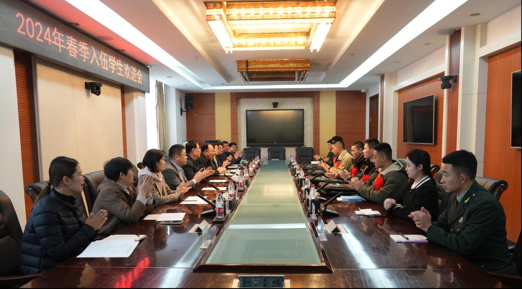 舒德峰代表学校党委对即将踏上从戎新征程的同学们表示祝贺,对同学们将爱国之志转化为报国之行表示肯定。他希望入伍同学坚定理想信念,树立家国情怀,把个人理想融入强军事业;珍惜军旅生涯, 尽快适应部队生活,严守军规军纪;练就过硬本领,成为有灵魂、有本事、有血性、有品德的合格军人,不断超越自我,实现个人梦想。
