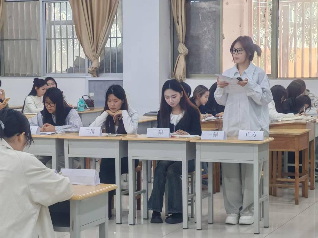 本次辩论赛共12支队伍参加,分为六场比赛,每场各有一个辩题。辩论赛在紧张而有序的氛围中拉开序幕,双方一辩运用理论引出观点,并结合具体事例进行完善。随后,双方辩手攻守交替、各执一词、互不相让,围绕辩题展开了深入而激烈的交锋,将整场比赛推向高峰。整场辩论赛,从一辩的立论到四辩的陈词都清晰明了,无一不体现出了各位辩手出色的口才与扎实的能力。台下的评委们结合选手们的表现采取公平公正的原则为每组参赛队伍进行打分。